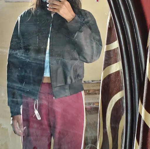 Soft black jacket for women made from leather look fabric. Full sleeve design with front zip and smooth inside lining. Best for daily wear, winter season, or casual outings. Looks smart with jeans or dress. Available sizes S to 3XL.